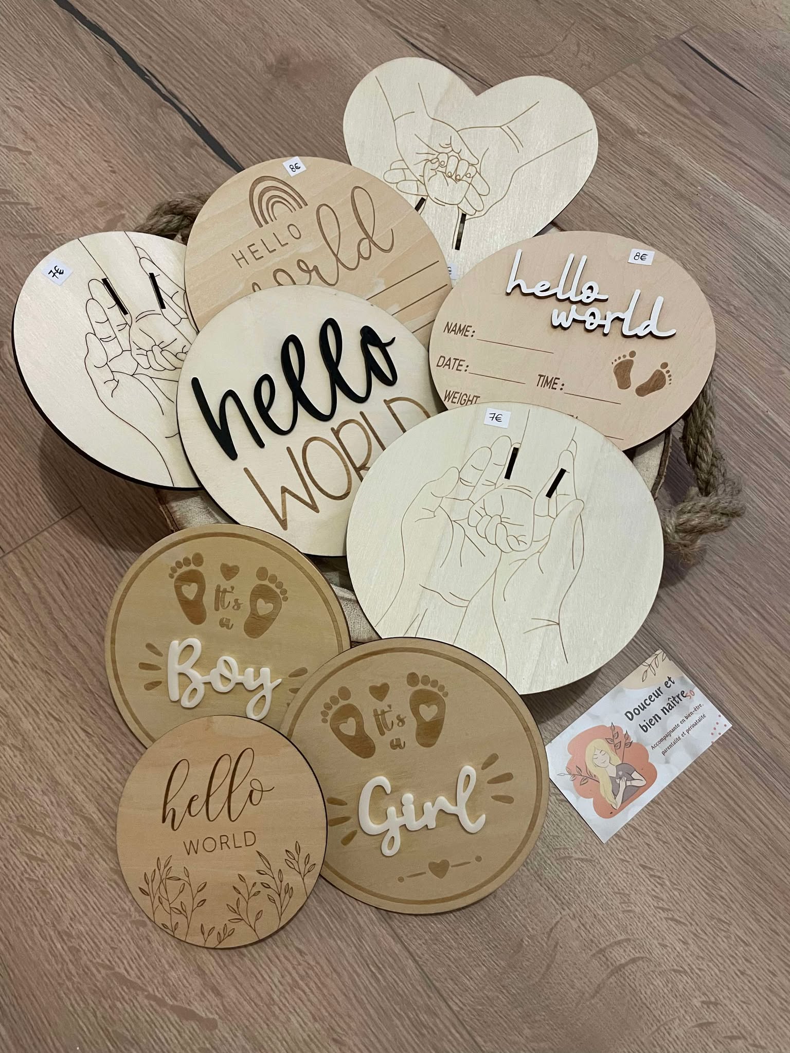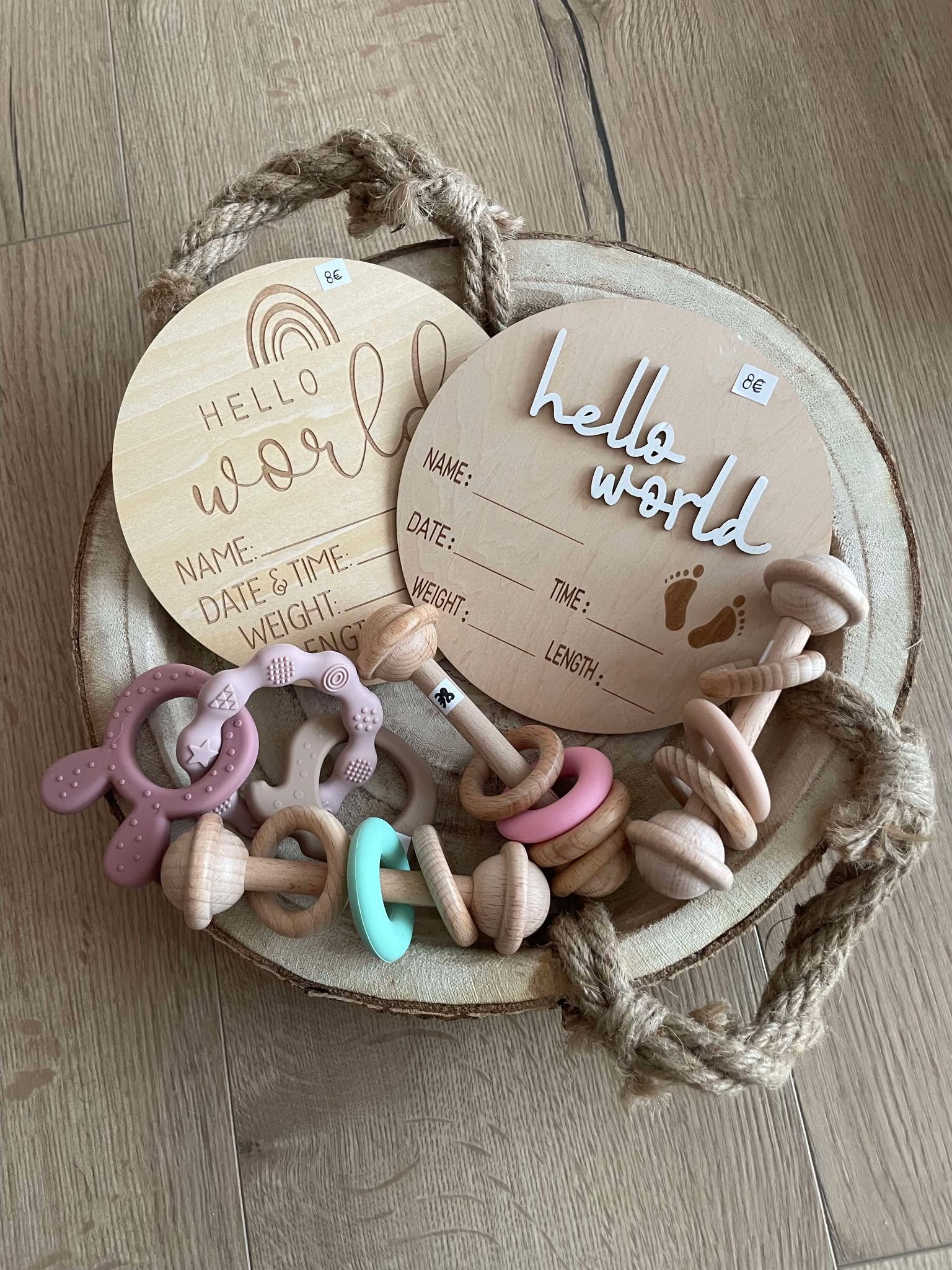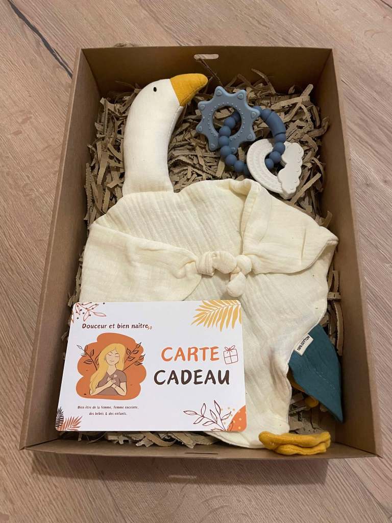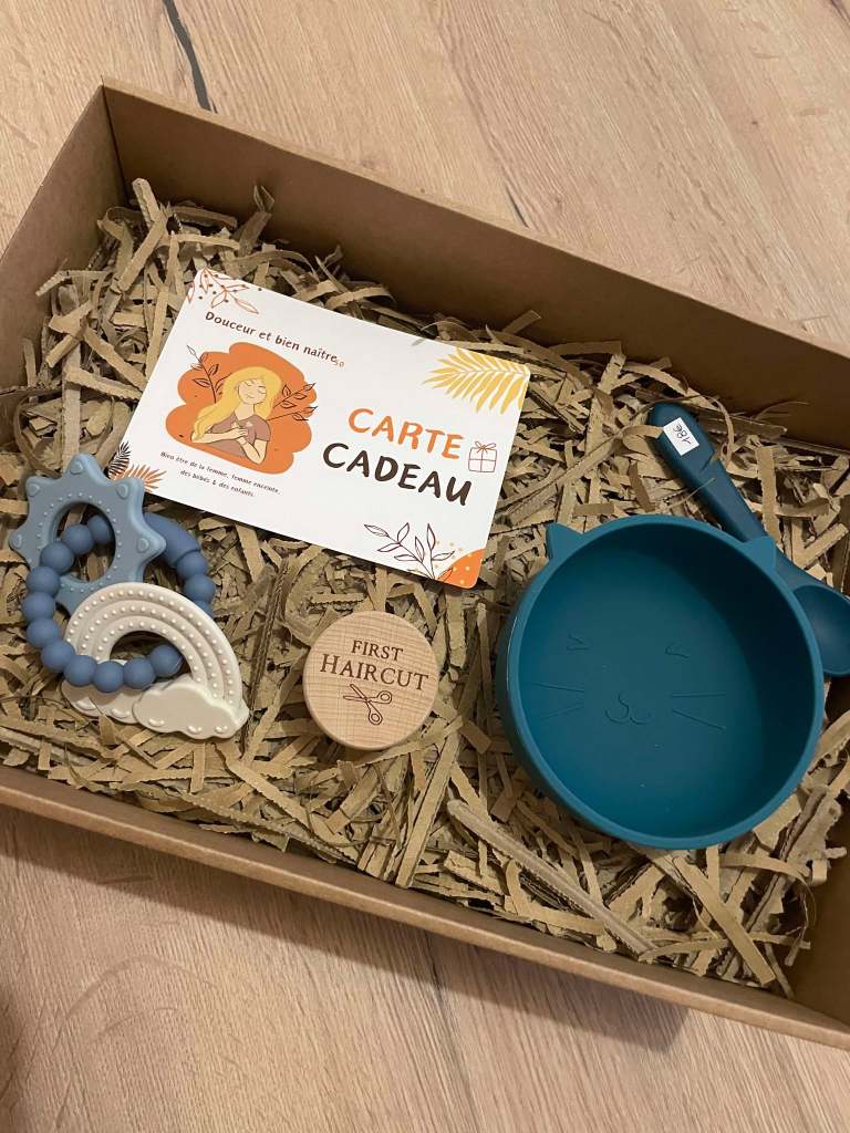 Vous avez besoin d’une idée pour annoncer une grossesse ? Besoin d’un cadeau pour une baby shower, gender reveal, mama blessing, naissance ou autre ? Je vous propose de créer votre box avec ce qu’il vous plaît ! (Carte cadeau, doudou, bol et cuillère, anneau de dentition, bola, collier de dentition, panneau de naissance…) Il y en a pour tout les goûts et tout les budgets !
